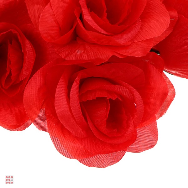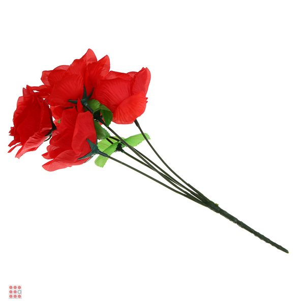Букет искусственных цветов в виде красной розы длиной 34 см из ткани и пластика – это декоративная цветочная композиция, которая может стать элементом оформления интерьера и будет красиво смотреться в вазе, делая обстановку более яркой и уютной. Букет смотрится естественно, имеет привлекательный цвет и может использоваться как атрибут для предметной фотосьемки или фотосессии.