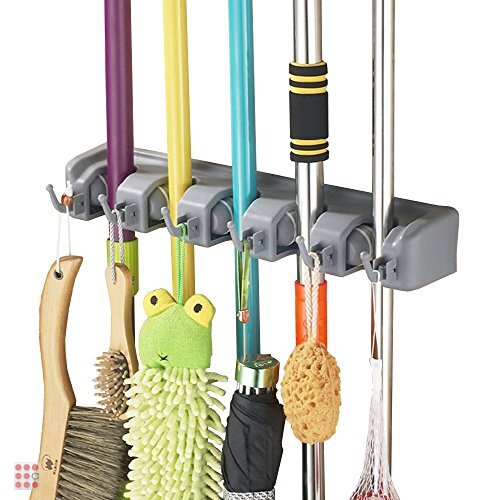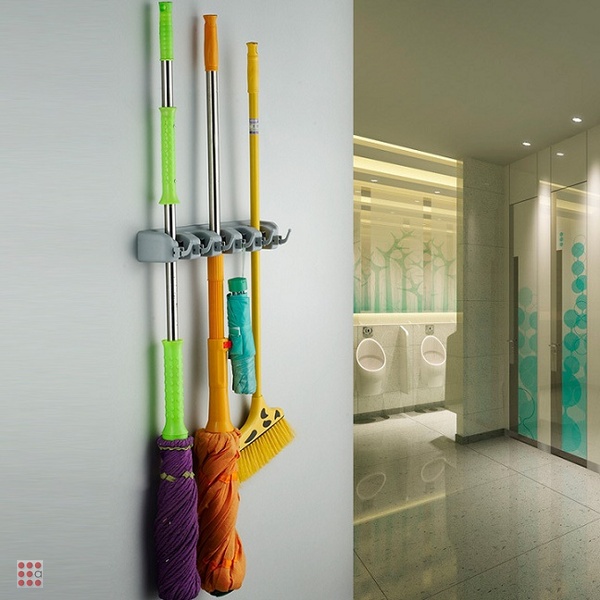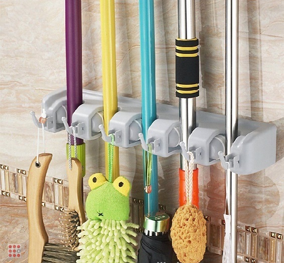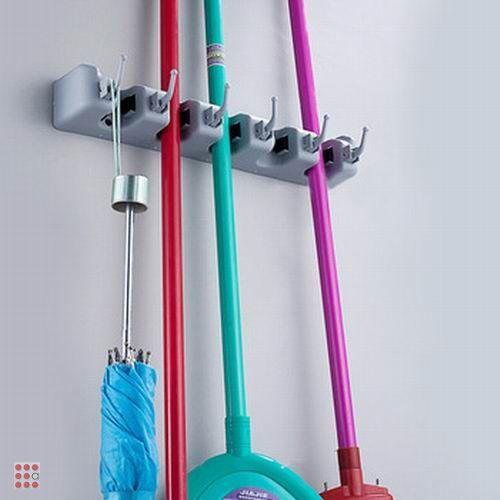 Настенный держатель оптом,который предназначен для удобного хранения принадлежностей для уборки. Универсальный настенный держатель для швабр, щёток, салфеток, садового инвентаря для швабр (включая типа МОП), надежно фиксирует инструменты в резиновых роликах.