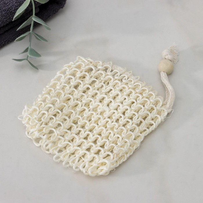 Мочалка-мешочек для вкладывания мыла Доляна, 10×10 см, бежевая