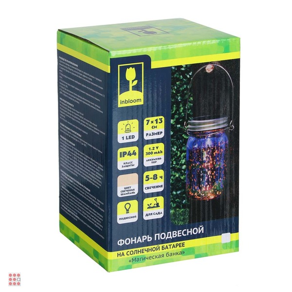 Необычное освещение может стать изюминкой вашего сада. Фонарь садовый INBLOOM на солнечной батарее Магическая банка смотрится поистине завораживающе и таинственно на ветвях деревьев. Изделие выполнено из стекла с металлическим подвесом и крышкой.