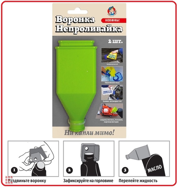 Дома, в автомобиле, за городом – универсальная воронка Непроливайка всегда с вами!
