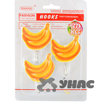 Крючок 3шт на блистере Бананы (липучка)NA1950