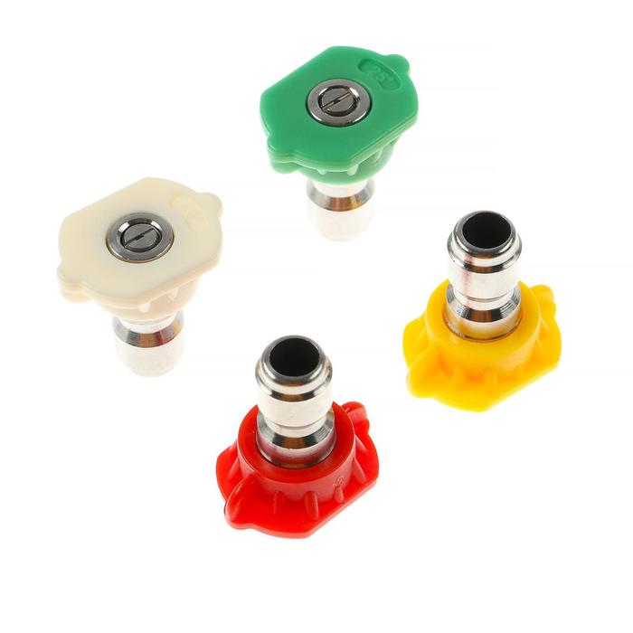 Изготовлены из металла и пластика высокой прочности, насадки рассчитаны на регулярное использование и работу под давлением. Комплект легко менять и хранить: четыре разных профиля распыла позволяют быстро переключаться между режимами очистки, мойки авто, обработки поверхностей или опрыскивания. Универсальные размеры и простота установки делают их востребованными как в профессиональных автосервисах, так и в домашних гаражах.