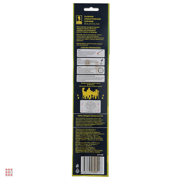 Палочки ароматические уличные, 5шт, 40см x d0,5см