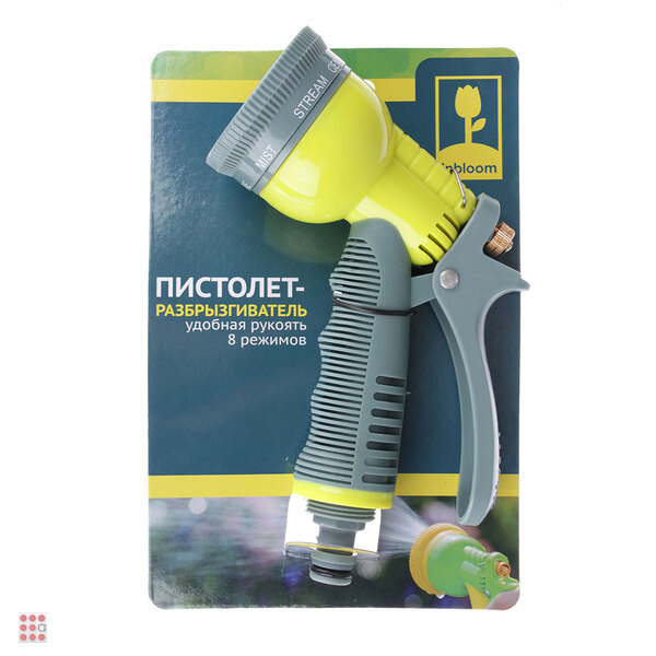 Пистолет-распылитель, 8 режимов, с эластичной накладкой на ручку, пластик INBLOOM