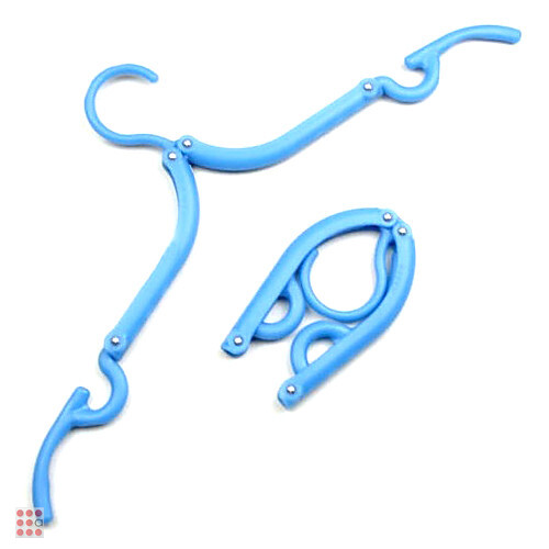 Вешалка складывается таким образом, что все крюки и загогулины оказываются внутри конструкции и ни за что не цепляются. В таком виде она занимает минимум места, даже если их несколько.