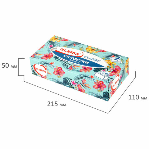 Салфетки в картонном боксе LAIMA практичны в применении. Их можно использовать не только дома, но и в офисе, на работе или взять с собой в дорогу. Предназначены для личной гигиены. В одной пачке 100 двухслойных салфеток белого цвета. Размер: 200 х 200 мм. Благодаря мягкой текстуре, салфетки не раздражают чувствительную кожу лица и носа. Особое применение найдут в парикмахерских и косметических салонах. Незаменимы в быту при снятии и нанесении макияжа, а также при возникновении простуды. Изготовлены из 100% целлюлозы. Не содержат спирт. Салфетки практичны в применении. Извлекаются по одной через клапан на верхней стороне коробки. Пользоваться салфетками удобно и легко - кончик следующей салфетки всегда выступает из коробки.