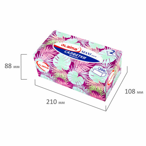Салфетки косметические 200 шт. в картонном боксе 2-слойные, LAIMA "Everyday", 20х20 см, 113589