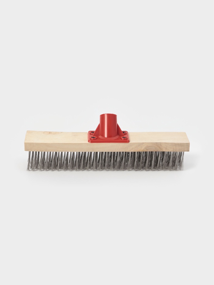 * Металлическая щетина: Жёсткие стальные ворсинки эффективно счищают засохшую грязь, остатки клея, строительные смеси и старую краску с бетона, плитки и дерева.