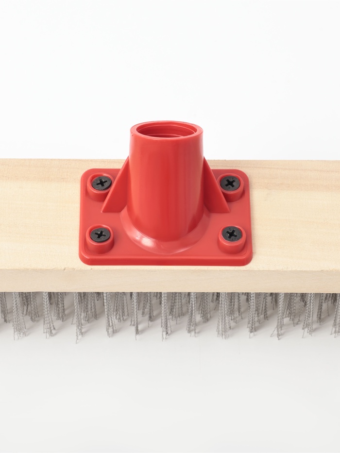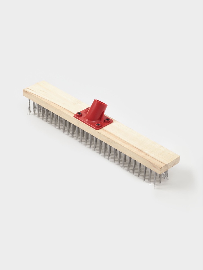 * Металлическая щетина: Жёсткий стальной ворс эффективно счищает засохшие строительные смеси, остатки клея, старую краску и многолетние загрязнения.