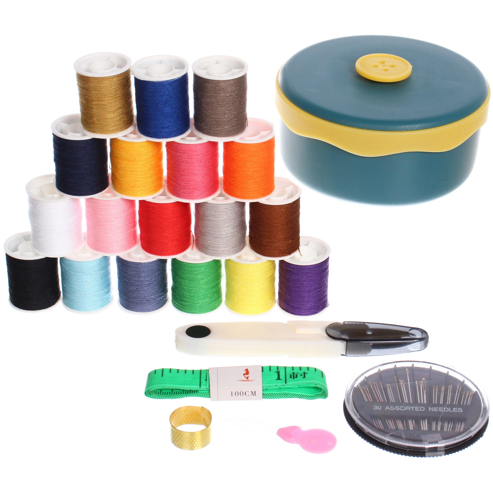 Швейный набор для рукоделия в боксе "Favorite Hous ", цвет зеленый, 23 предметов, 13.5*6см