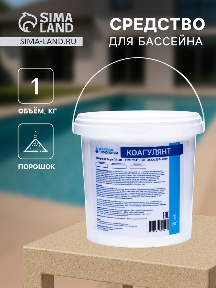 Коагулянт для бассейна «Очистные технологии», порошок, 1 кг — кристально чистая вода без лишних хлопот