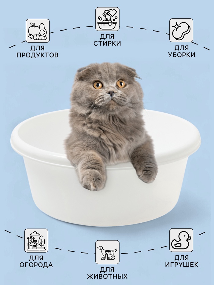 Белый пластиковый таз объёмом 11 литров — практичное решение для дома, дачи или кемпинга. Компактный размер и круглая форма делают его удобным для хранения, стирки или уборки. Гладкие стенки легко мыть, а прочный материал выдерживает повседневные нагрузки.