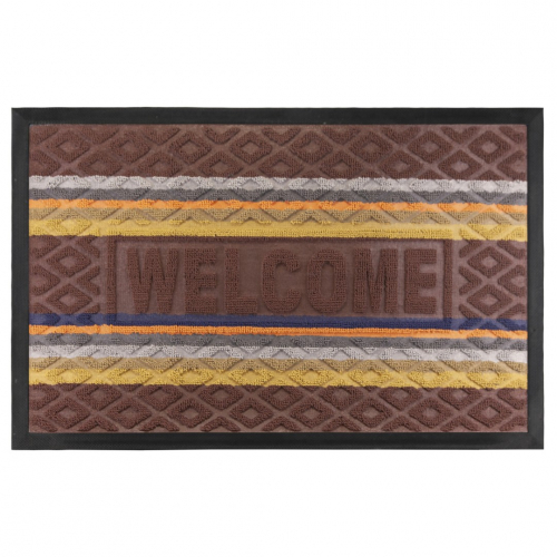 Придверный коврик Velourимеет закруглённую геометрию, предлагается в стильном коричневом цвете. Эффективно задерживает уличную грязь и пыль. Лицевая часть коврика произведена из полиэстера, правильная обработка которого позволяет достичь ворсового покрытия. Благодаря такому ворсу жильцы и гости дома смогут убирать с подошв накопившуюся уличную слякоть. При необходимости такой коврик можно быстро очищать и дезинфицировать. Задняя часть произведена из резины, поэтому коврик не скользит по напольным покрытиям.•Не боится постоянного использования;•долго сберегает фабричный вид;•идеально сочетается с разными интерьерами.