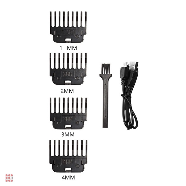 Универсальная машинка для стрижки аккумуляторного типа. Корпус металлический. Т-образное лезвие из высококачественной легированной стали. В комплекте 4 насадки: 1мм, 2мм, 3мм 4мм и зарядное устройство.