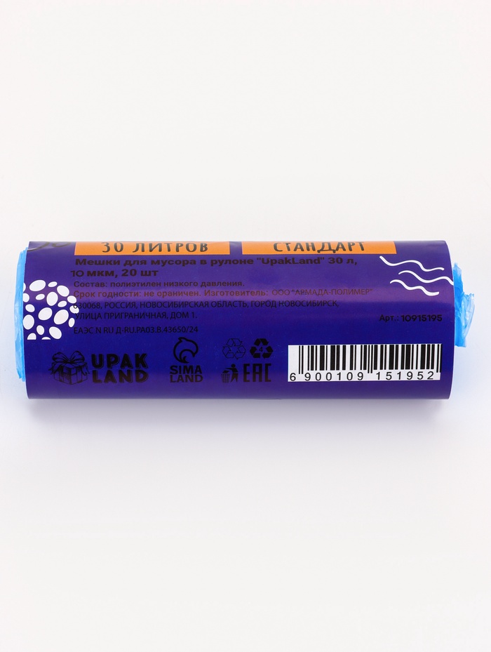 * Универсальное применение: Синий цвет помогает отличать пакеты для разных типов отходов. Полиэтилен низкого давления сохраняет форму при наполнении.
