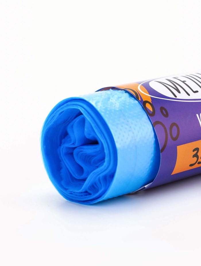 * Функциональный синий цвет: Оттенок помогает визуально отделить эти мешки для особых типов отходов. Цвет равномерно распределен по всей поверхности.