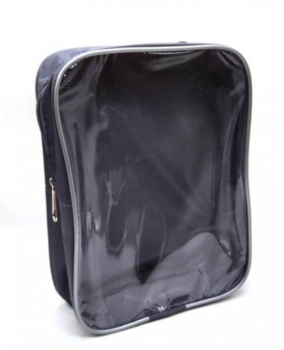 К220 Косметичка ПВХ (22*19*6) Классика стандарт прозачная, кант Синий