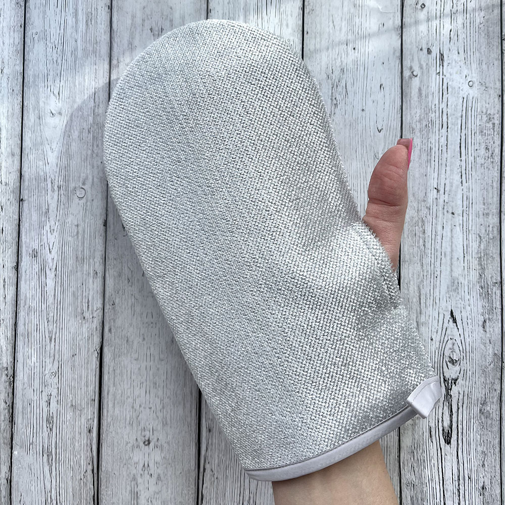Использование: чистить поверхность нужно в варежке ладонью, движением руки от себя (против шерсти варежки)