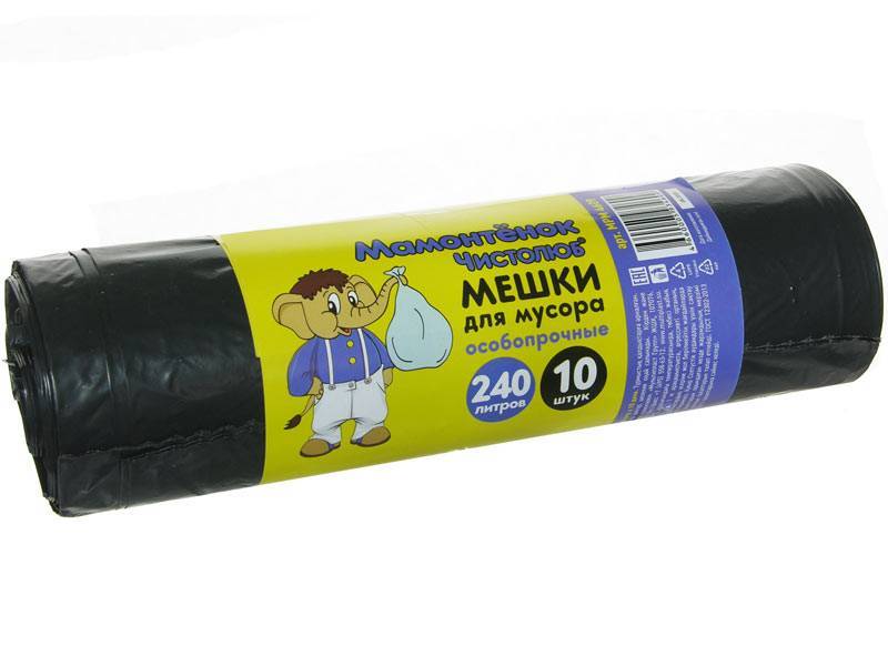 Мешки для мусора 240л 10шт 24мкм Мамонтенок чистолюб особопрочные
