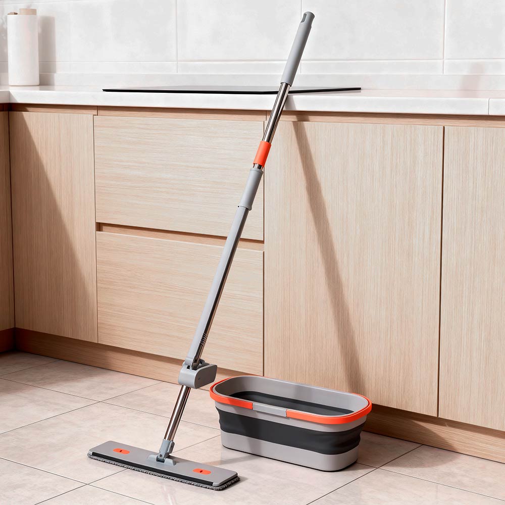 Набор для уборки: ведро 8,5л, швабра с рукояткой нерж 134см, насадка из микрофибры 44,5*11см, LV-F09