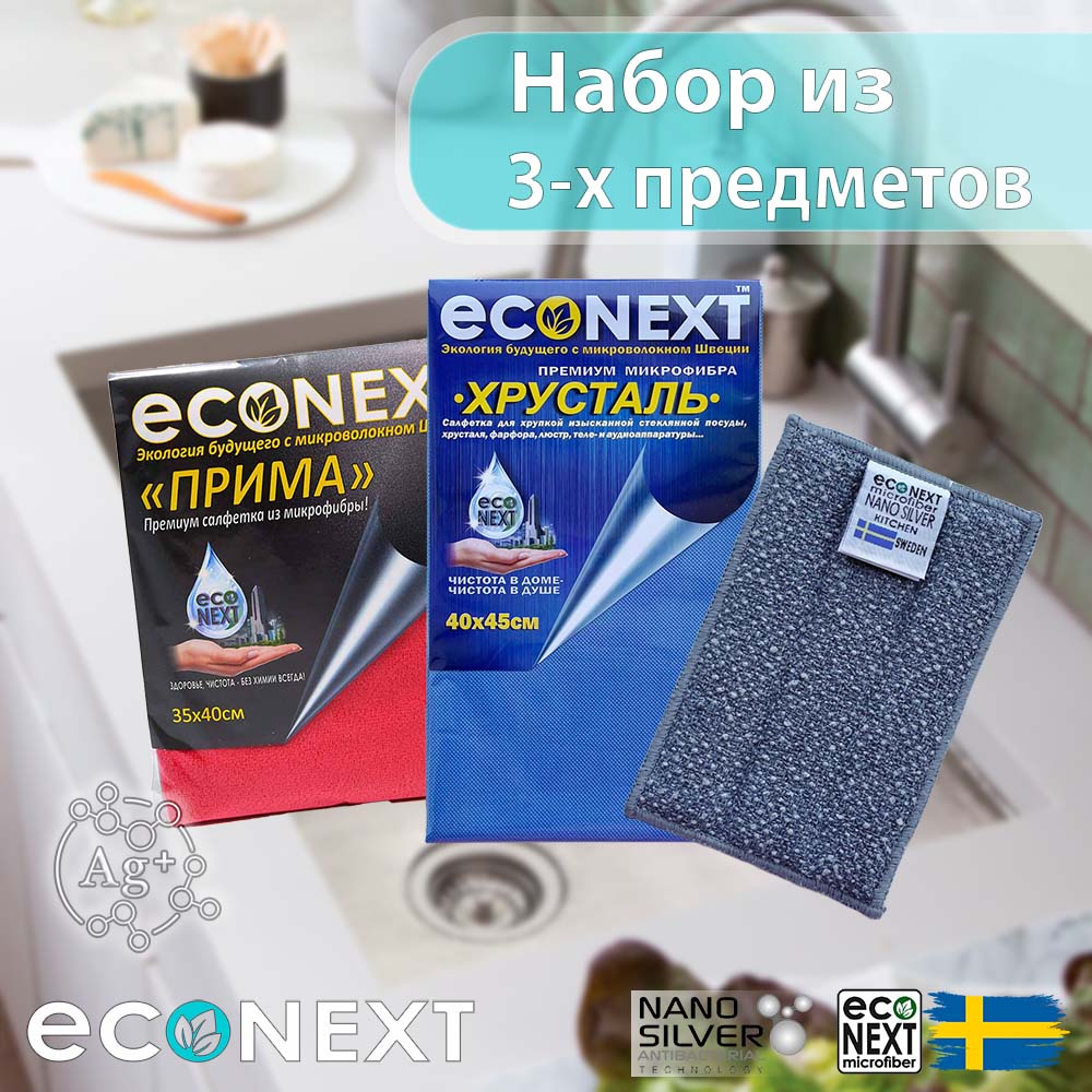 Набор из 3-х салфеток "Прима", "Хрусталь", "Кардинал" EcoNext