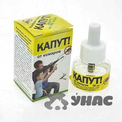 Электрофумигатор универсальный "Капут!"+ пластины для уничтожения комаров. 10 пластин рассчитаны на 100 часов активного действия. Применение: вскрыть ячейку, достать пластину и установить её на нагревательную поверхность электрофумигатора. Полная гибель комаров в закрытых помещениях достигается за 10–20 минут в зависимости от площади помещения. Пластина может быть использована многократно, для дальнейшего использования пластину хранить в упаковке. Применение одной пластины рассчитано до 10 часов в непрерывном режиме работы в помещении площадью до 20 м?. Обесцвечивание пластины является показателем окончания срока её действия. Средство устанавливать в местах недоступных для детей, вне контакта с огнеопасными предметами. Не прикасаться к электрофумигатору, включенному в сеть, влажными руками или металлическими предметами.