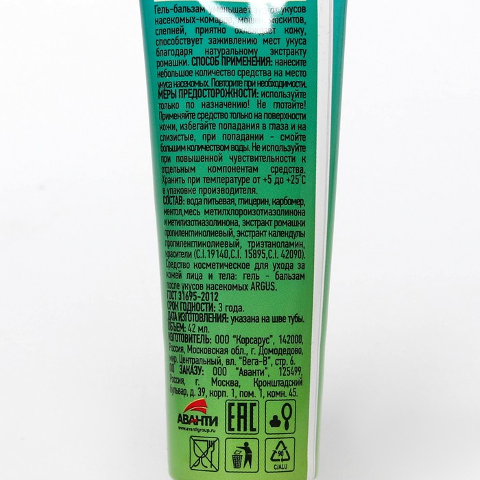 Гель-бальзам после укусов ARGUS, туба, 42 мл