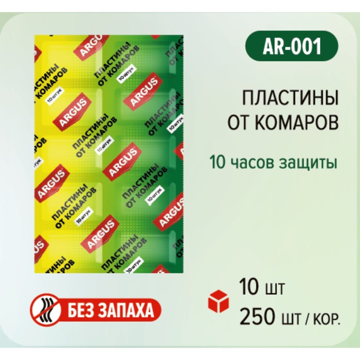 Пластины от комаров ARGUS зеленые без запаха (поперечная) 250
