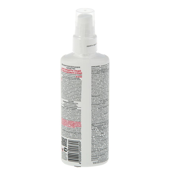 Способ применения: одежду и другие изделия из ткани обрабатывать на открытом воздухе (вне помещений). Располагать одежду и направлять струю средства по направлению ветра. Средство распылять на изделия с расстояния 20-25 см от них, держа упаковку в вытянутой руке. Особенно тщательно обработать брюки вокруг щиколоток, голеней, коленей, бедер и места возможного проникновения клещей и блох к телу. Одежду просушить и надевать на нижнее белье.