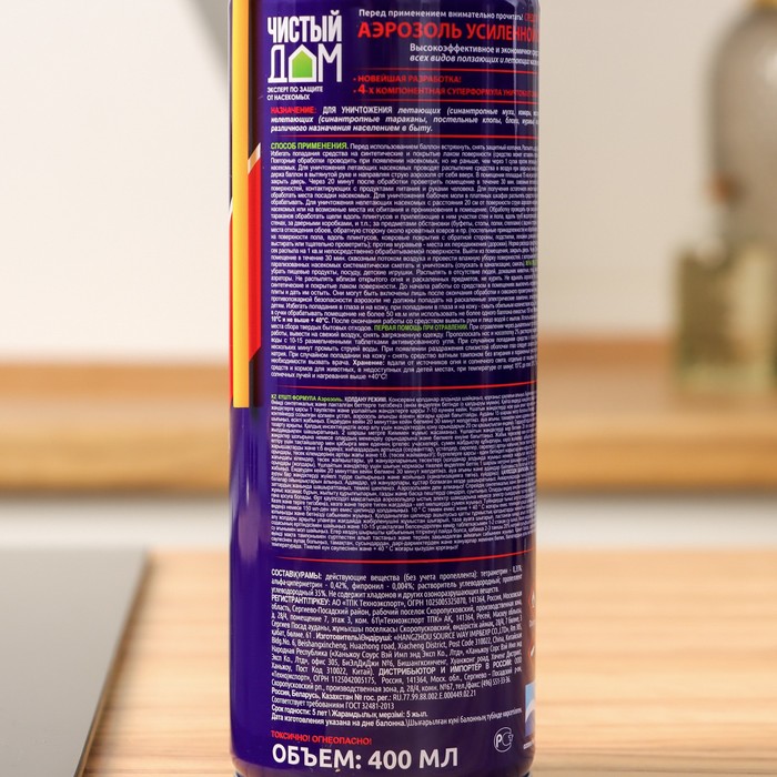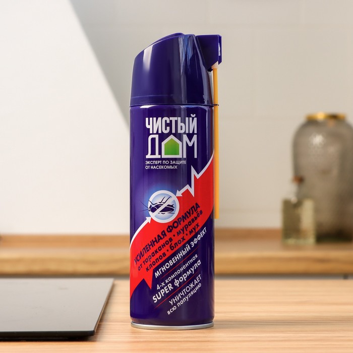 Аэрозоль "Чистый дом" является эффективным средством для борьбы с насекомыми в домашних условиях. Усиленная формула обеспечивает быстрое и надежное уничтожение насекомых, включая тараканов, муравьев, клопов и других вредителей.