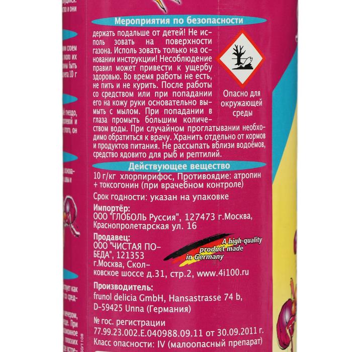 Продукт поставляется в удобной упаковке весом 100 грамм, что позволяет использовать его на протяжении длительного времени. Порошок легко наносится на поверхности, где обитают муравьи, и быстро начинает действовать.