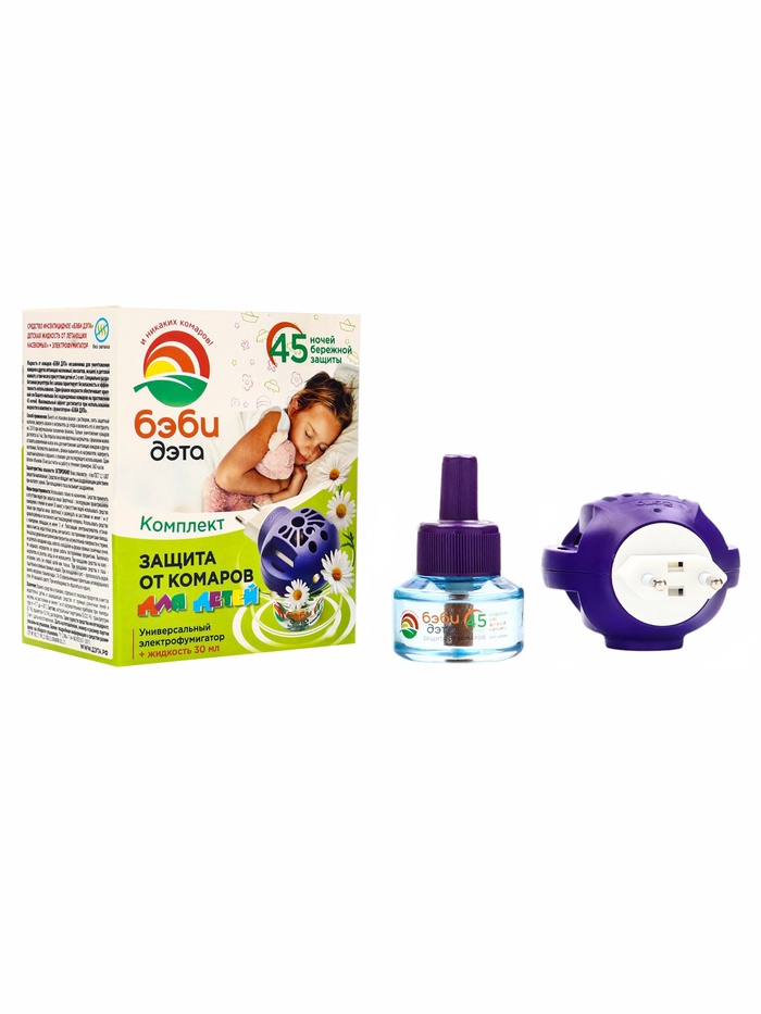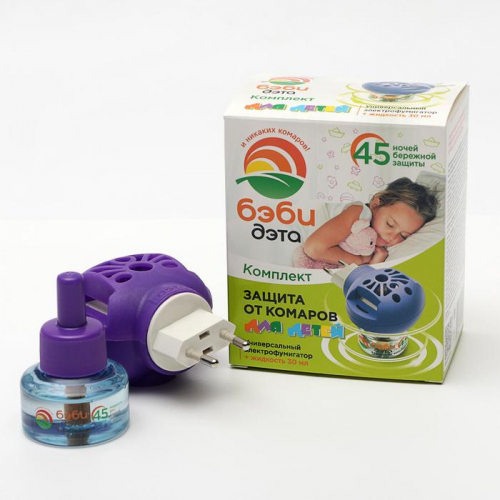 Жидкость от комаров ДЭТА БЭБИ ИНСЕКТО комплект жидкость 45 ночей, флакон 30 мл. + электрофумигатор 2 в 1