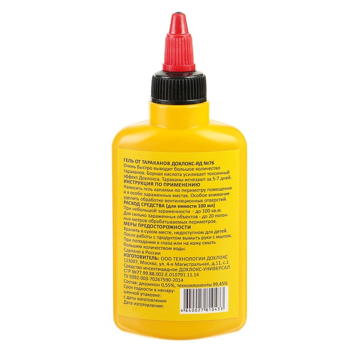 Средство от тараканов Дохлокс «Сгинь» №76, гель, борный, усиленный, флакон, 100 мл