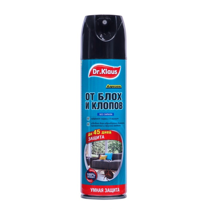 ОписаниеDr.Klaus Аэрозоль от клопов, блох и других насекомых, баллон 250 мл. Аэрозоль Dr.Klaus предназначен для уничтожения нелетающих насекомых (блох, постельных клопов) населением в быту. Также убивает тараканов, муравьев и кожеедов.Способ применения: перед применением баллон встряхнуть. Для уничтожения клопов обработать струей аэрозоля с расстояния 20 см места их скопления и возможного обитания (щели в стенах, за плинтусами, кровати, за коврами, картинами). Мягкую мебель тщательно оросить с нижней стороны по швам, складкам и краям обивки. Не обрабатывать постельные принадлежности. Для уничтожения блох в помещениях обработать поверхность пола, щели за плинтусами, мягкую мебель, обратные стороны ковров, дорожек и т.п., стены обработать на высоту одного метра. Обработку проводить при открытых окнах (форточках) при температуре не ниже +10°С. После обработки помещение проветрить не менее 30 мин. В течение дня использовать не более 1 баллона в помещение площадью 30-40 м². Норма расходы средства 20г/м² обрабатываемой поверхности. При необходимости обработку повторить через 4 недели.Меры предосторожности: воспламеняющийся аэрозоль. Не распылять вблизи открытого огня и раскаленных предметов. Предохранять от действия прямых солнечных лучей и нагревания выше 40°С. Баллон под давлением. При нагревании возможен взрыв. Использовать по назначению. Беречь от детей. Не разбирать. Распылять в отсутствии детей, домашних животных, птиц, при открытых окнах (форточках). Аквариумы плотно закрыть. На время обработки убрать продукты питания и кухонную утварь. При распылении не переворачивать головкой вниз. Избегать попадания средства в рот, глаза, на кожу. При попадании в глаза и на кожу - промыть водой. Хранить в вертикальном положении, отдельно от пищевых продуктов, в местах, недоступных детям! После работы со средством тщательно вымыть руки с мылом. Не курить во время применения. Использованные баллоны и баллоны с истекшим сроком годности утилизируются как бытовые отходы, не вскрывая, не сжигая. С осторожностью применять в присутствии аллергиков и лиц, больных астмой.Составциперметрин (0,25%), тетраметрин (0,15%), синергист пиперонилбутоксид (0,8%), отдушка, растворитель, пропеллент углеводородный.