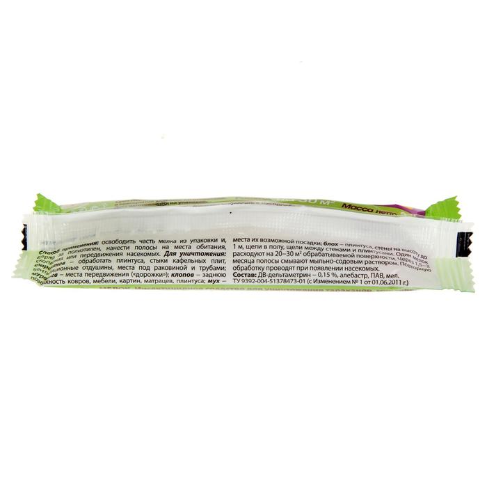 Универсальное средство для уничтожения бытовых насекомых, с продолжительным сроком действия.Инструкция по применению:- Для уничтожения тараканов полосы наносят по задним стенкам шкафов, столов, тумб, по трубам водопроводной и отопительных систем (особенно в местах их ввода и вывода). Обрабатывают в местах сбора мусора и нижнюю часть раковин. Обработку проводят одновременно во всех помещениях, чтобы предотвратить их заселение.- Для уничтожения рыжих домовых муравьев обрабатывают места и скопления и передвижения (дорожки).- Для уничтожения постельных клопов средство наносят полосами на места обнаружения или возможного обитания насекомых: на заднюю поверхность ковров мебели, картин. Обрабатывают также трещины в плинтусах, стулья и матрасы с нижней стороны.- Для уничтожения блох обрабатывают плинтусы и стены на высоту не более 1 м, а также проводят полосы вдоль щелей в полу, между стенами и плинтусами.- Для уничтожения комнатных мух проводят полосы по стыкам стекол и рам, по верхним частям дверей, шкафов, кухонной мебели и другим местам вероятной посадки мух. Норма расхода не более 1 карандаша (массой 20-30г) на 20-30м² обрабатываемой поверхности. Повторные обработки проводят при появлении новых насекомых. Обладает остаточной активностью в течение 4-6 недель.Состав: Алебастр, Мел, ПАВ (Поверхностно-активные вещества)