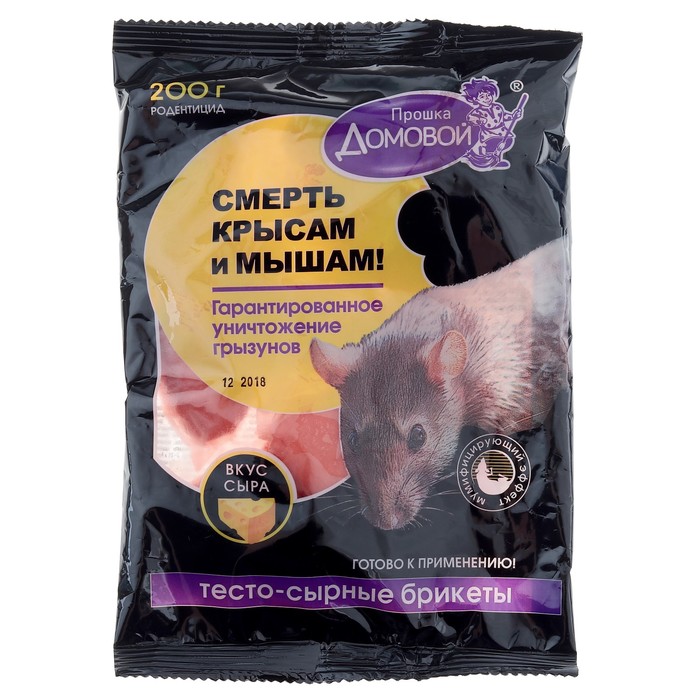 Тестосырный брикет от грызунов Домовой Прошка, со вкусом сыра, пакет, 200 г