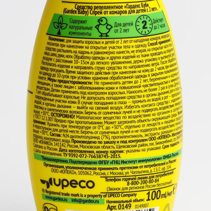 Спрей репеллентный от комаров "Gardex Baby", детский, с календулой и ромашкой, 100 мл
