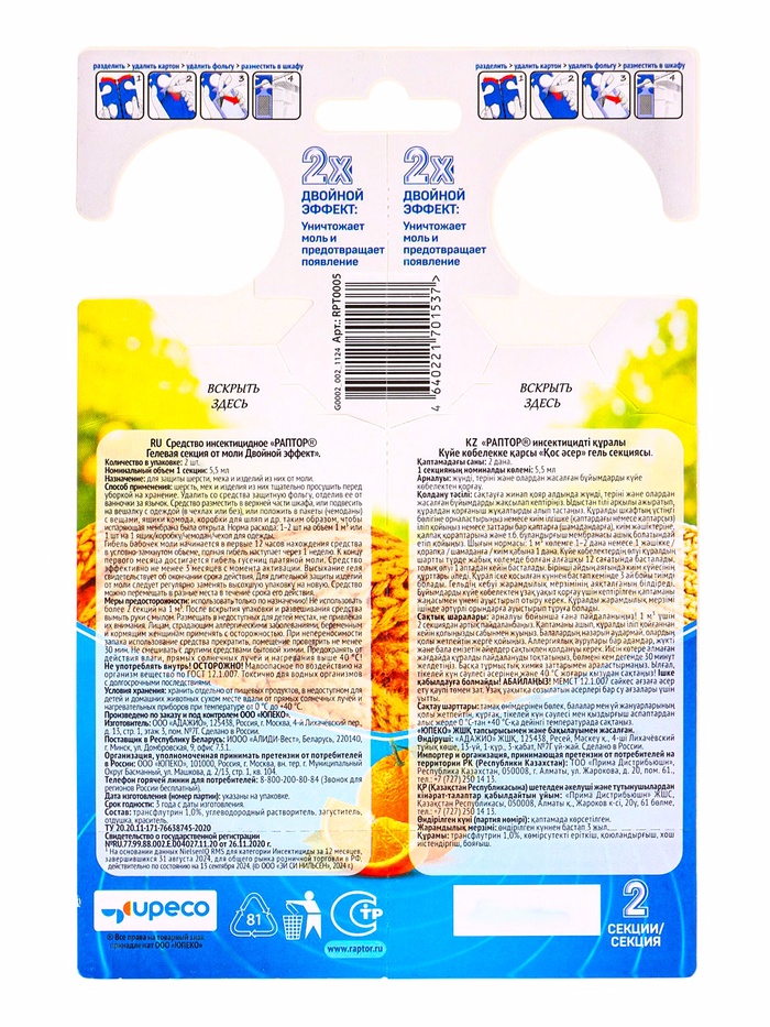 Гелевая секция от моли «Раптор», с ароматом апельсина
