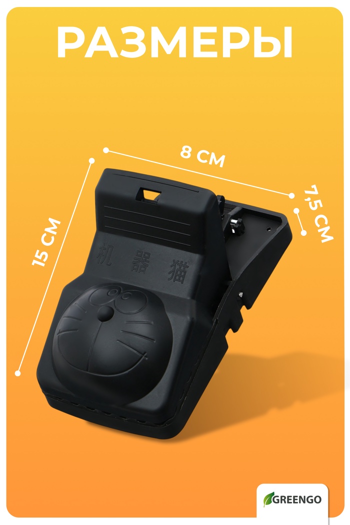 Мышеловка, 15×8×7.5 см, кошка, пластик, Greengo