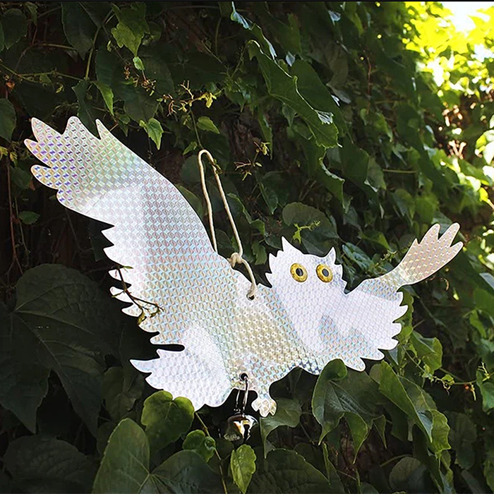 * Тройной отпугивающий эффект: силуэт совы имитирует природного врага, блестящая поверхность создаёт неожиданные блики на солнце, а колокольчик издает тихий звон на ветру. Это воздействует на птиц одновременно по нескольким каналам восприятия.