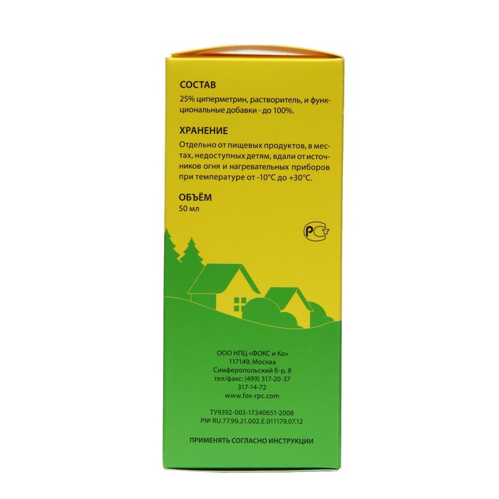 Концентрат, предназначен для применения в практике медицинской дезинсекции — с целью уничтожения синантропных членистоногих (тараканов, постельных клопов, блох, муравьев, крысиных клещей, мух, ос) на объектах различных категорий: в жилых, нежилых, производственных, хозяйственных и подвальных помещениях, на объектах коммунально-бытового назначения (гостиницы, общежития, спорткомплексы), на предприятиях пищевой промышленности, общественного питания, магазинах, в детских и лечебно-профилактических (ЛПУ) учреждениях (кроме спален и игровых комнат); дезинсекции помещений в ЛПУ и очагах чесотки и педикулеза против чесоточных клещей и вшей; для обработки отходов классов А, Б и В в ЛПУ для уничтожения синантропных насекомых (тараканы, блохи, муравьи, вши, личинки и имаго мух, комары, осы), крысиных и чесоточных клещей; дезинсекции на объектах железнодорожного транспорта и метрополитена, включая вагоны различного типа, вагоны служебные и специального назначения, вагоны-рестораны и буфеты, стационарные объекты ведомственного подчинения в отсутствие людей; борьбы с комарами и их личинками в закрытых городских водоемах, в зданиях и постройках; борьбы с комарами и другими компонентами гнуса в природных стациях — при обработке нерыбохозяйственных непроточных естественных и искусственных водоемов постоянного и временного существования, покрытых растительностью участков открытой территории, в зданиях и постройках (категорически запрещено применение средства в водоемах, имеющих хозяйственное значение и используемых для разведения рыбы, птицы); борьбы с иксодовыми клещами (переносчиками возбудителей клещевого энцефалита (КЭ), клещевого боррелиоза (болезнь Лайма) и других заболеваний) при обработке природных стаций; для защиты людей от нападения иксодовых клещей и блох (переносчиков возбудителей опасных заболеваний человека) при обработке верхней одежды.Действующее вещество: циперметрин 25%