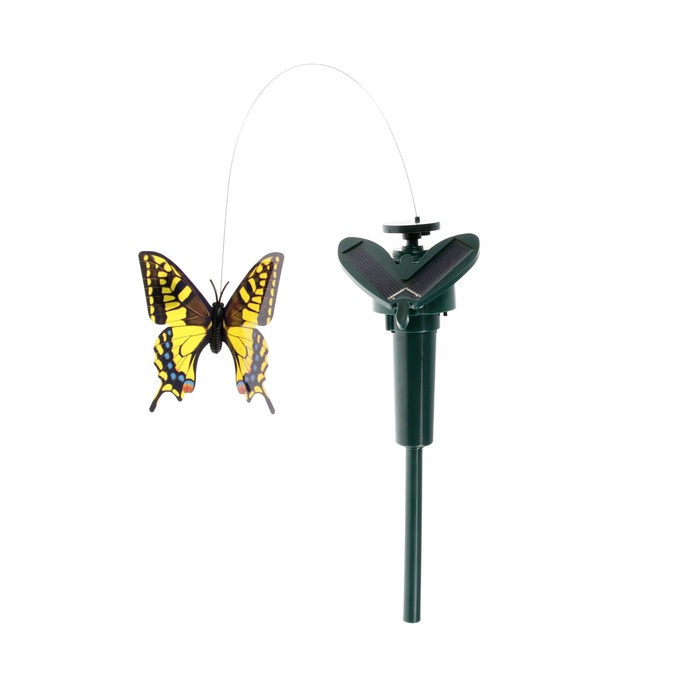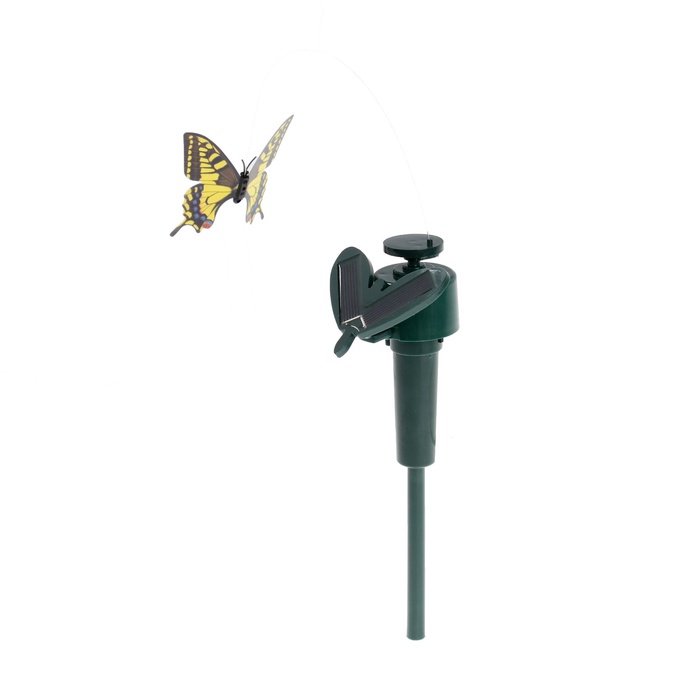 [Отпугиватель насекомых, бабочек и птиц. Безопасный и надежный, уличный и огородный отпугиватель122][Отпугиватель отгоняет мух, клопов, птиц, бабочек122][Инструкция по установке: Вставьте устройство в землю, переведите переключатель в нужное положение. Устройство имеет солнечну. батарею для непрерывной работы.122]