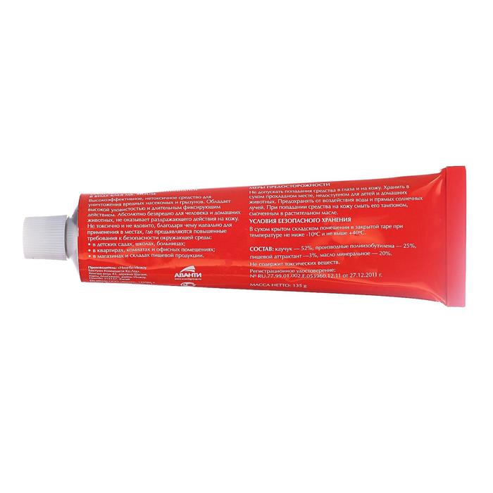 Средство обладает особой липкостью и высокой способностью к удержанию в зоне контакта отлавливаемых животных.