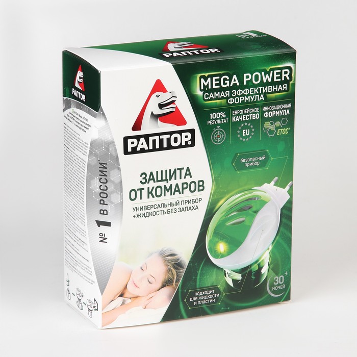 Набор фумигатор + жидкость от комаров, РАПТОР, повышенная эффективность, 30 ночей