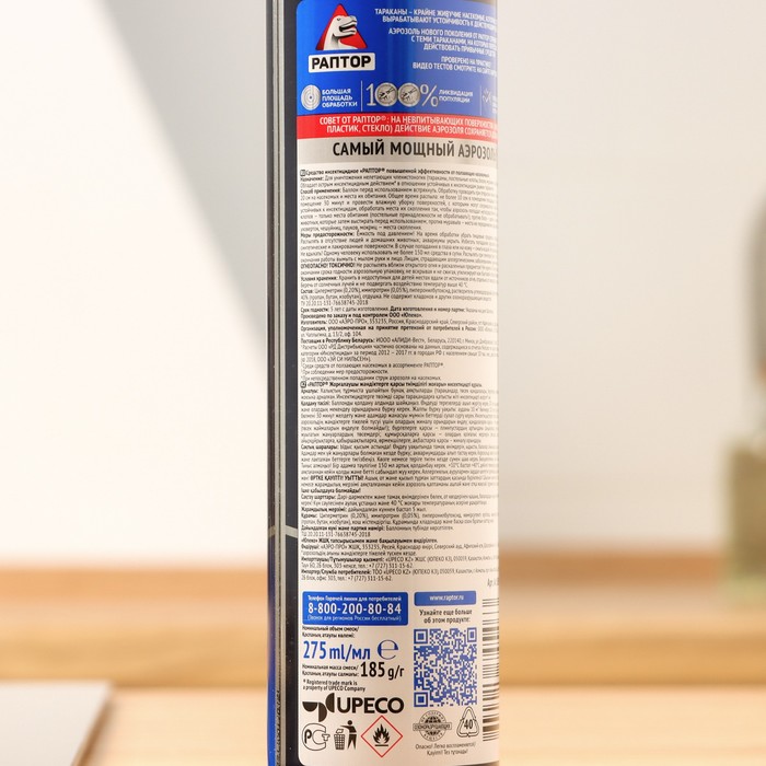 Способ применения: баллон перед использованием встряхнуть. Обработку проводить при открытых окнах. Распылять с расстояния 20 см на насекомых и места их обитания.