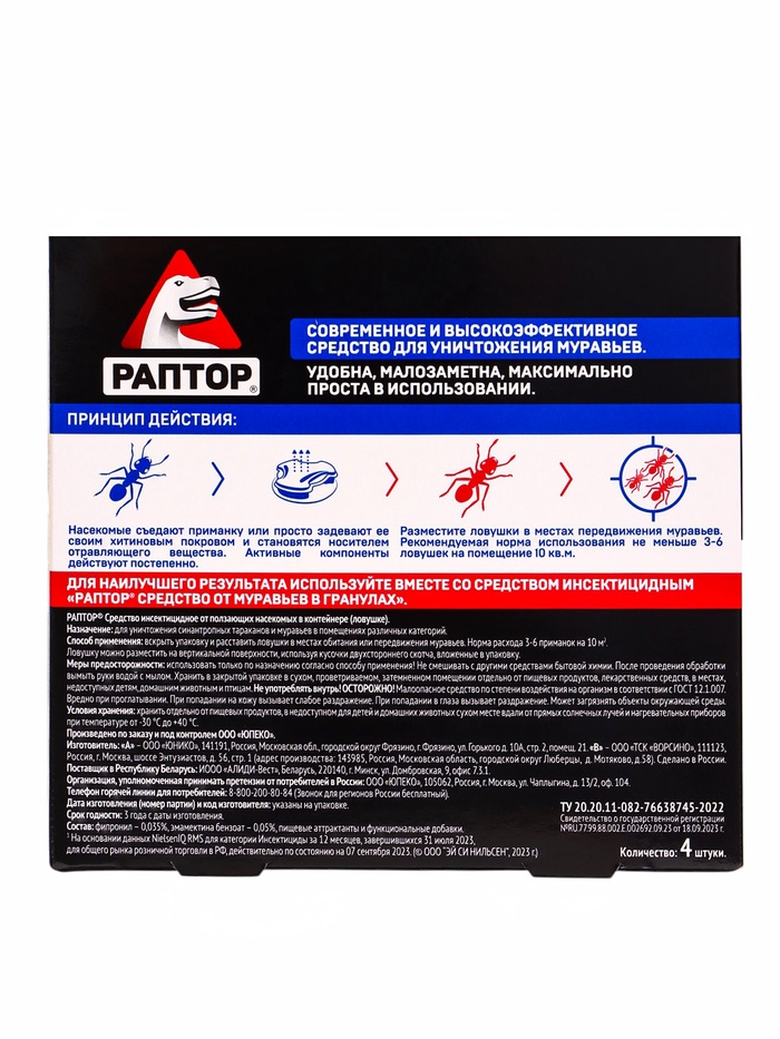 Ловушки «Раптор» от муравьёв, в контейнере, 4 шт.