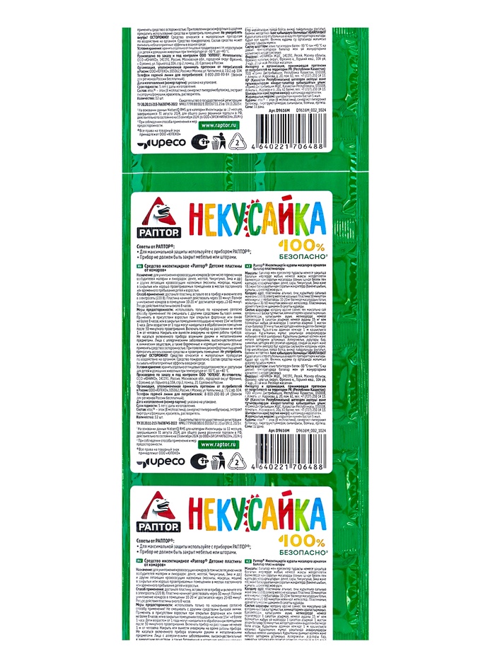 Раптор «Некусайка» Пластины от комаров для детей в мини-прилавке 10+2 (40/240)