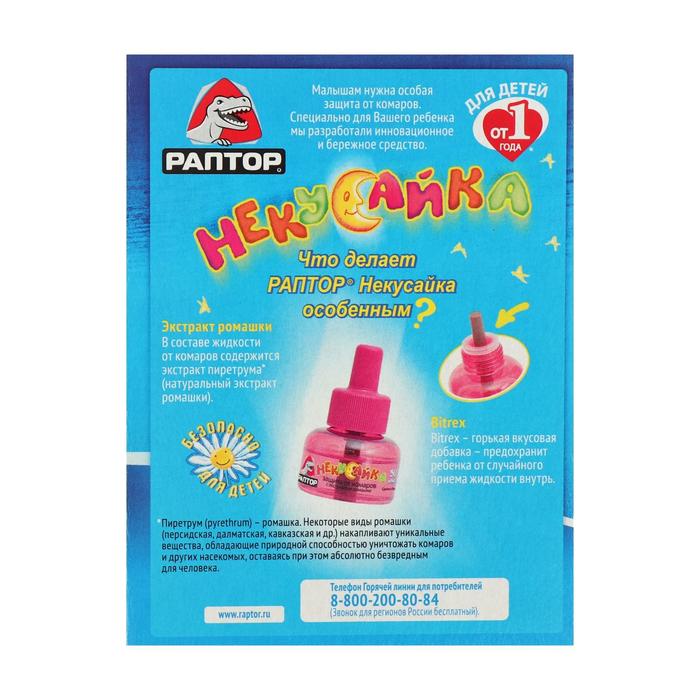 Жидкость от комаров «Раптор. Некусайка» для детей 45 ночей