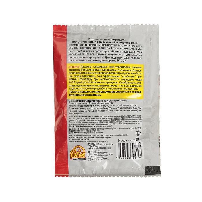 Гранулы от грызунов Ратобор 50гр